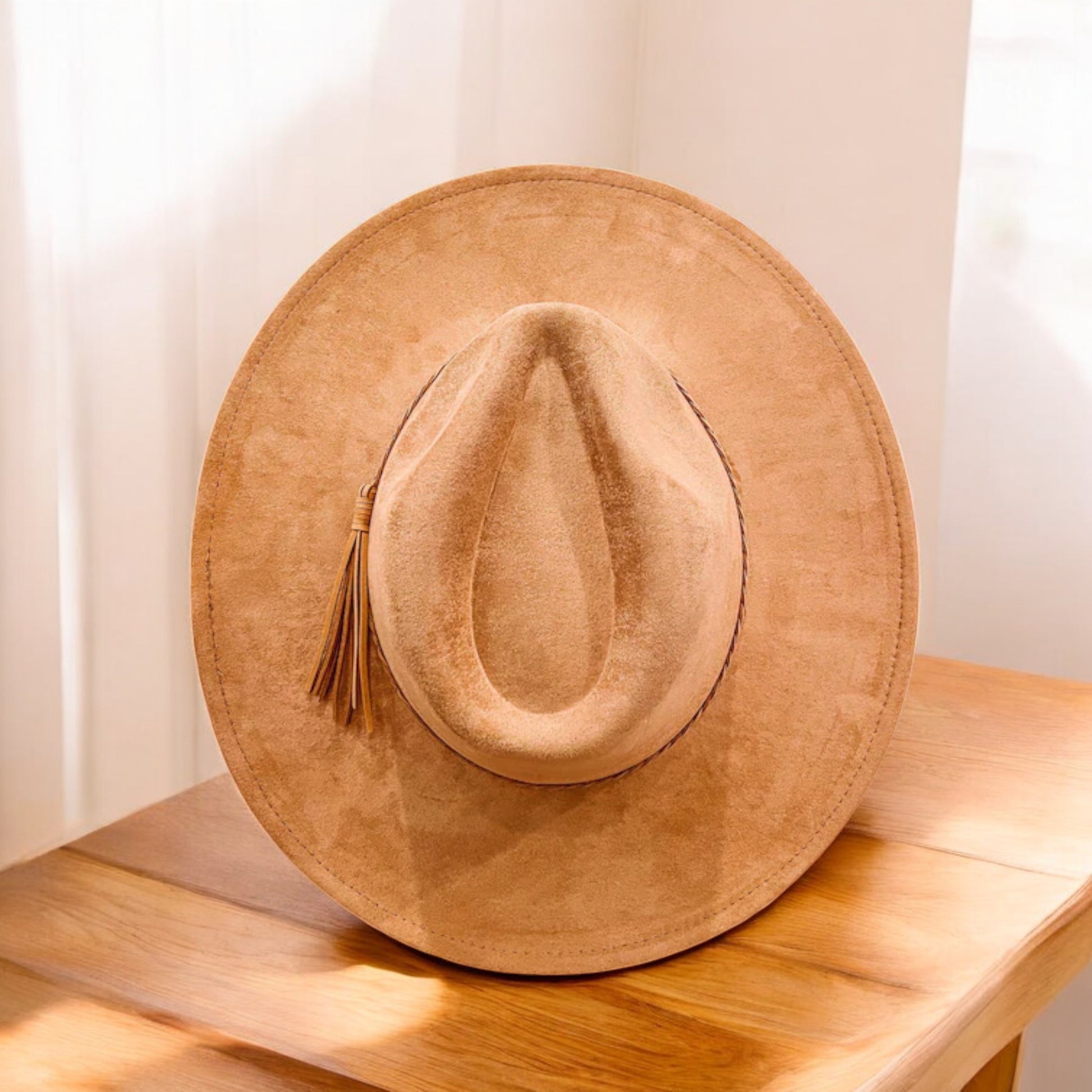 These vegan suede hats feature an elastic interior band for a perfect fit.