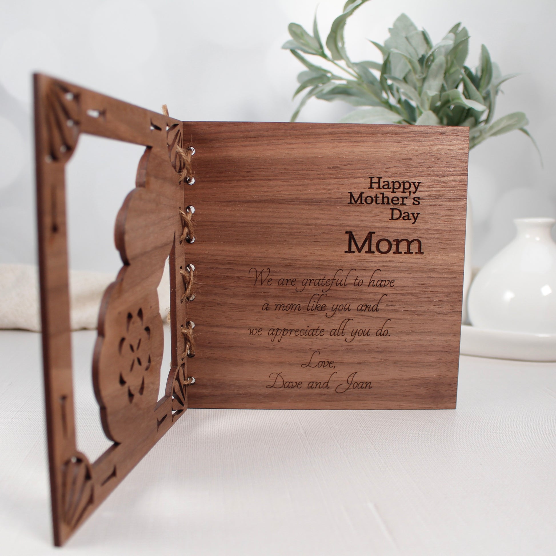 Whether you're looking for a unique and meaningful gift for your own mother, or want to surprise a friend or family member with something special this Mother's Day, our personalized wooden card is the perfect choice.